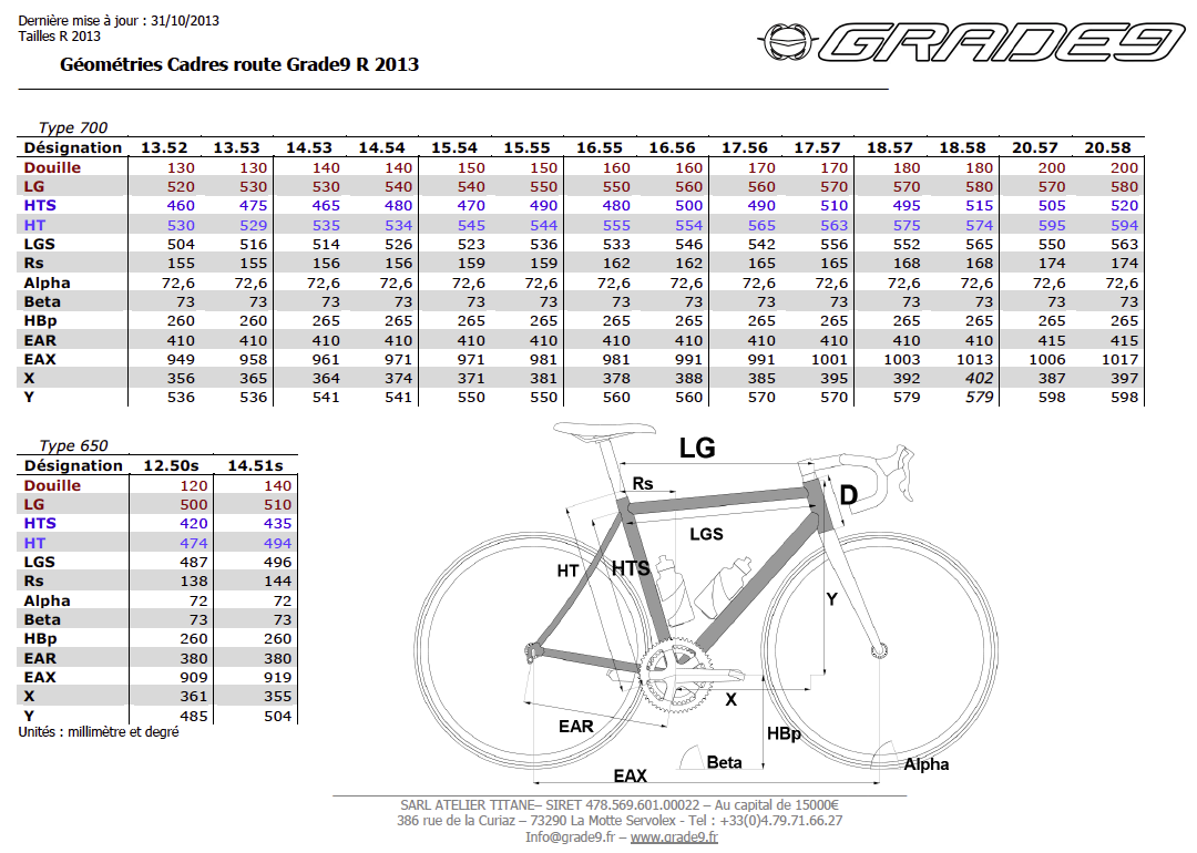 Géométrie : Sur mesure (en roues de 650 et 700).